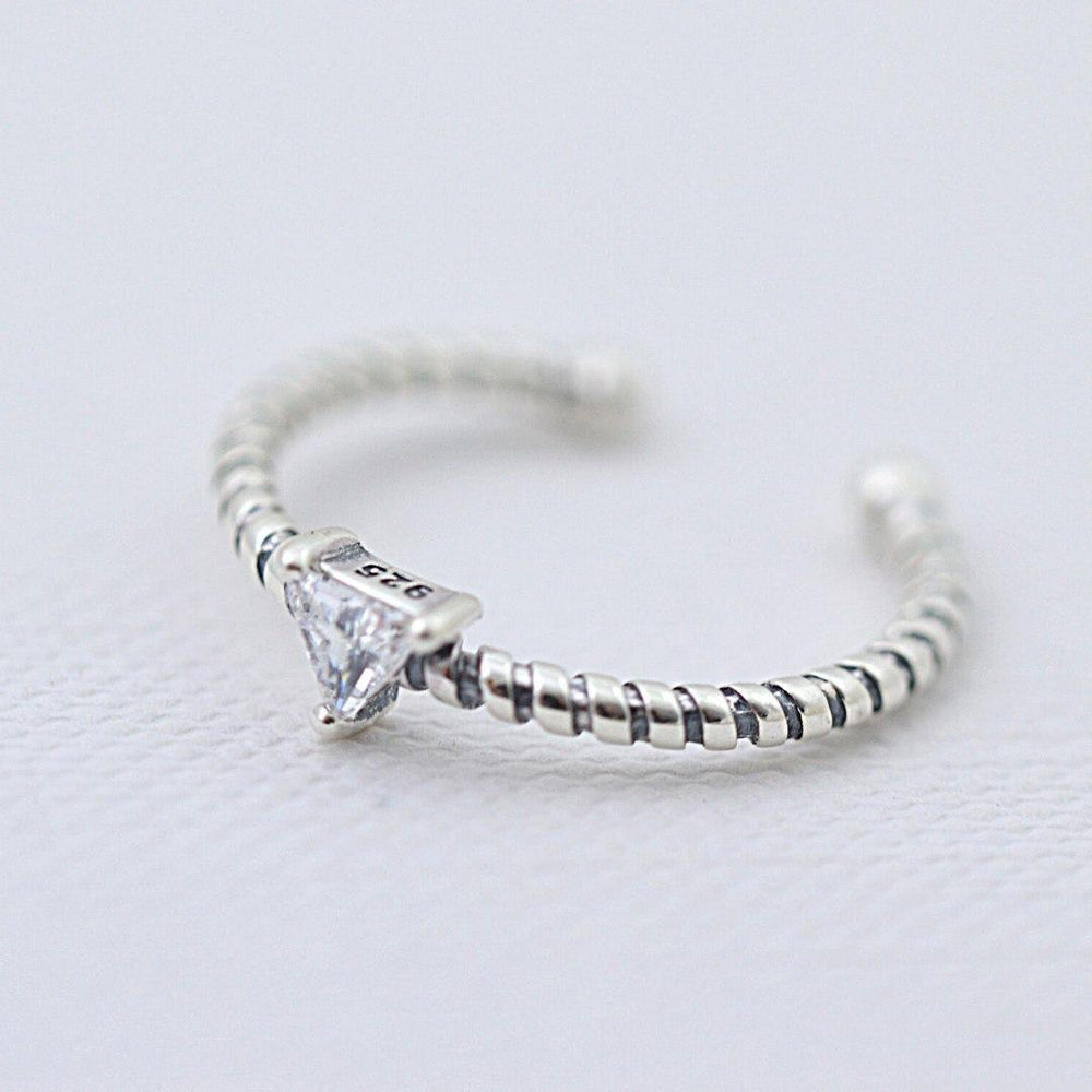 Elevate your foot jewellery with our Crystal Clear Triangle Toe Ring, a free-spirited bohemian delight that brings a touch of elegance to your toes. Crafted with love and care, this toe ring features an open sterling silver band, elegantly twisted in design and adorned with an oxidised finish that lends it a rustic charm. At the heart of this piece, a triangular claw setting proudly cradles a clear glass crystal, sparkling like a drop of sunlight captured from the sky. With an open back design, it's adjustable to fit your unique style, reminding you to embrace life's ever-changing journey. Slip on this toe ring, let your feet dance to the rhythm of your spirit, and celebrate the beauty of the free-spirited bohemian in you.