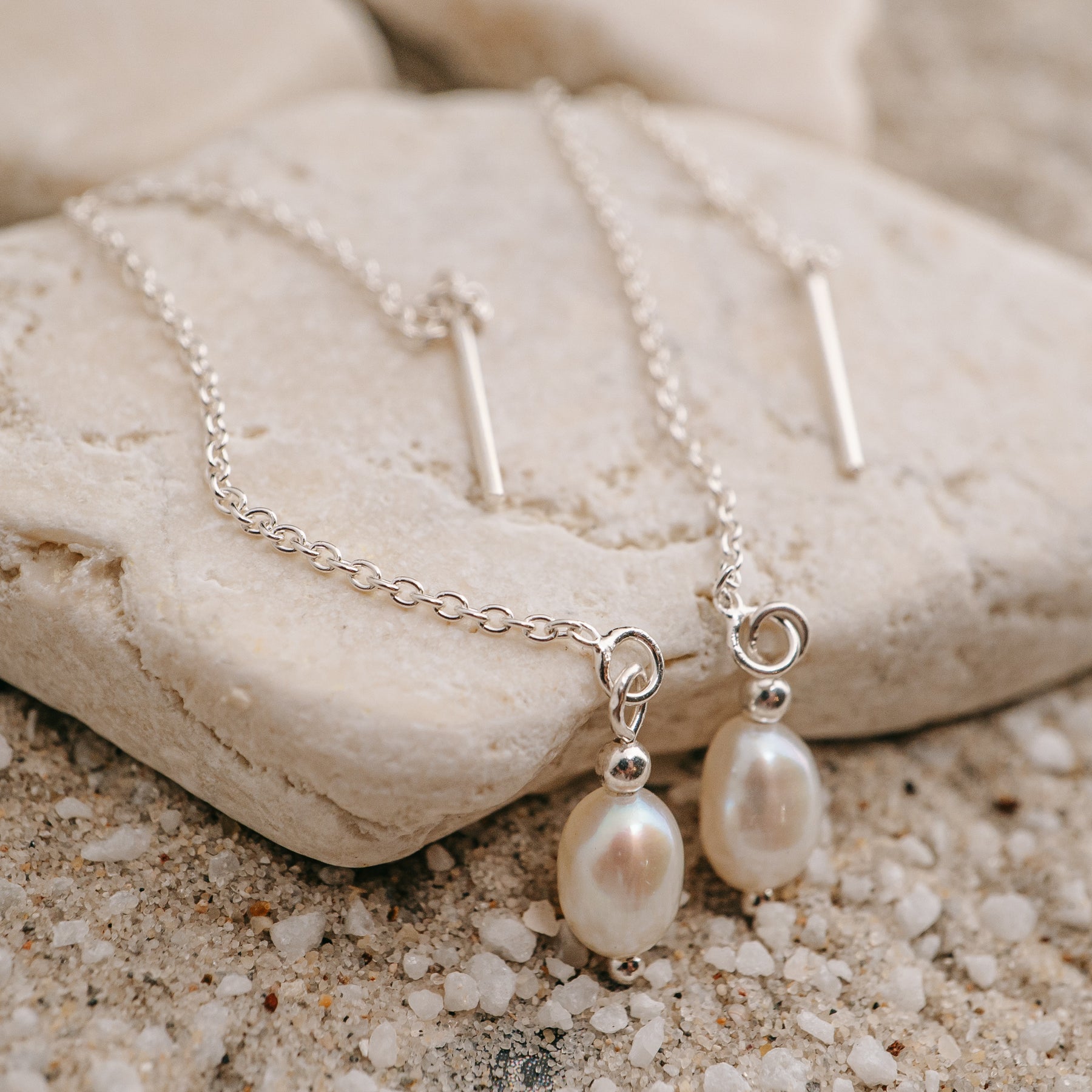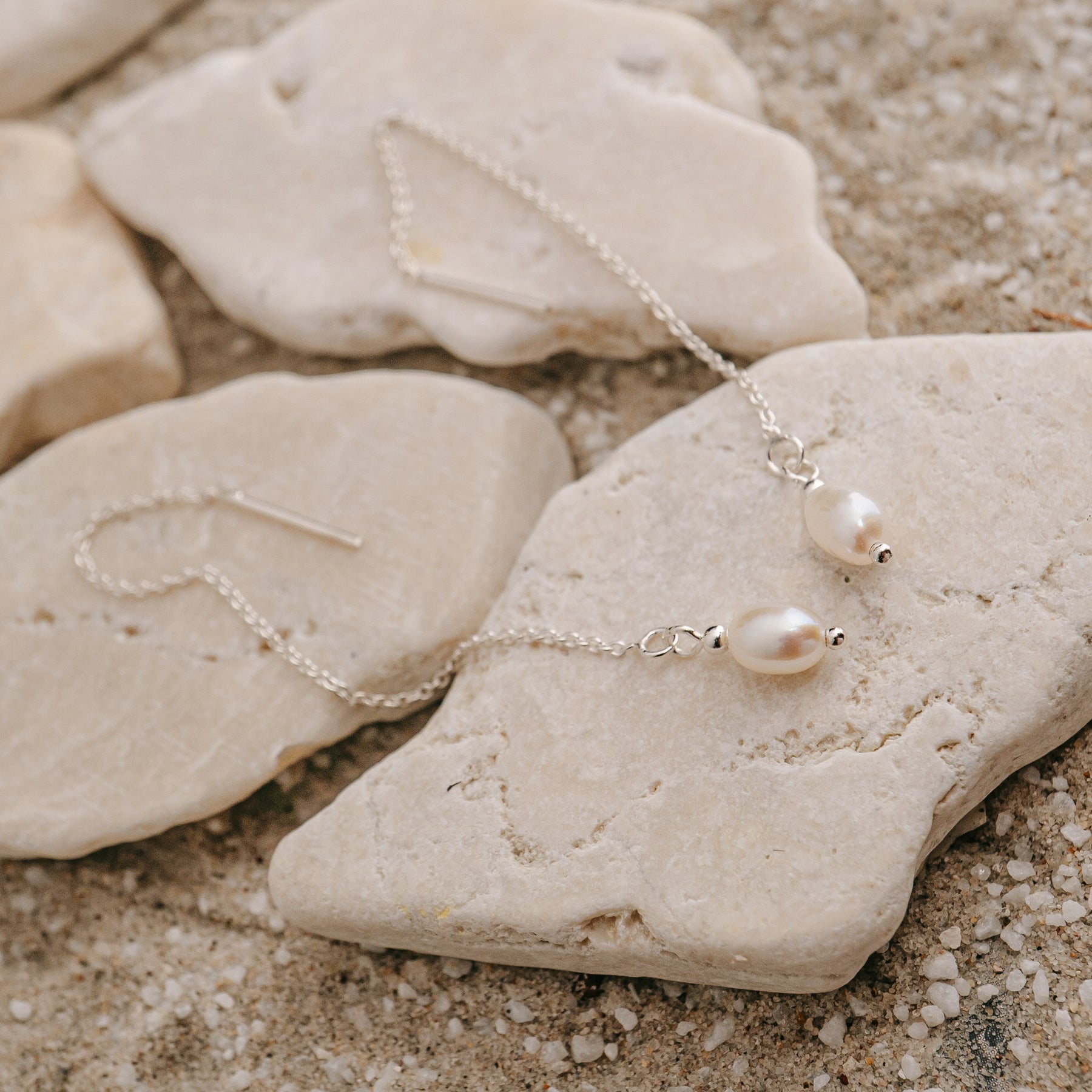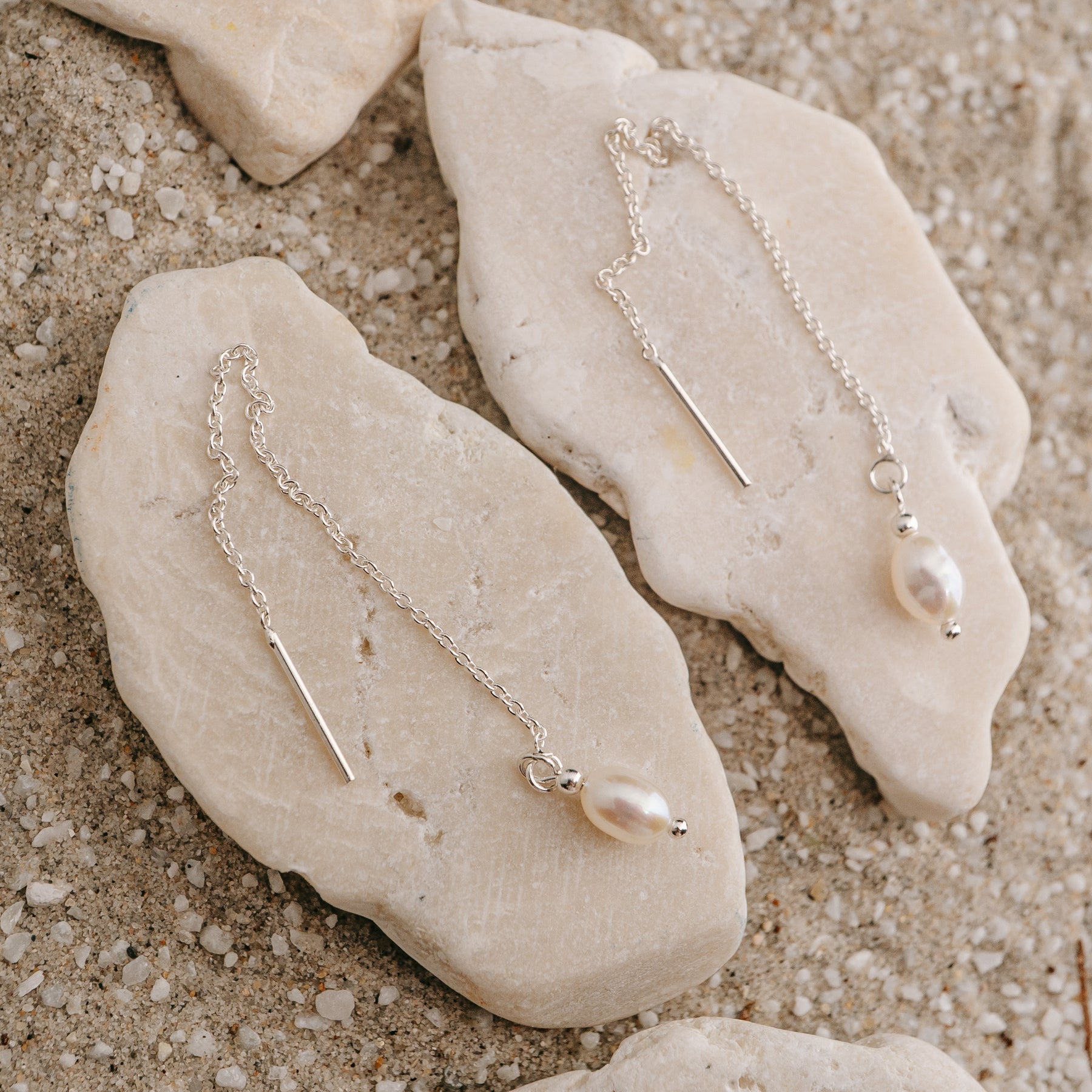 Let your spirit drift with the tides in our Pearl Breeze Threads — dainty chain thread earrings that dance as you move. A luminous freshwater pearl sways gently at one end, while a fine sterling silver bar glides effortlessly through the ear, adding a touch of bohemian grace. Light as sea air and full of soulful shimmer, they’re made for dreamers who follow the rhythm of the breeze.