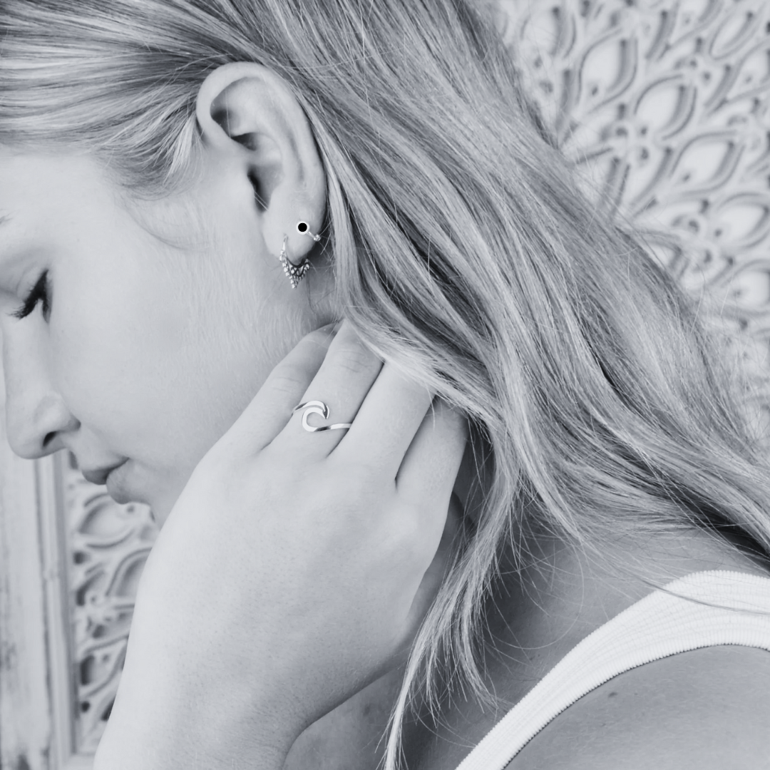 The Midnight Mini Huggies bring a touch of moody elegance to any look, featuring polished sterling silver huggie hoops set with a small midnight-black insert that adds just the right hint of mystery. Dainty, lightweight, and effortlessly chic, these little beauties hug the lobe with a smooth, comfortable fit — perfect for everyday wear, side piercings or stacking with other favourites. Simple yet striking, they’re the kind of earrings that quietly glow with midnight charm wherever you wander.