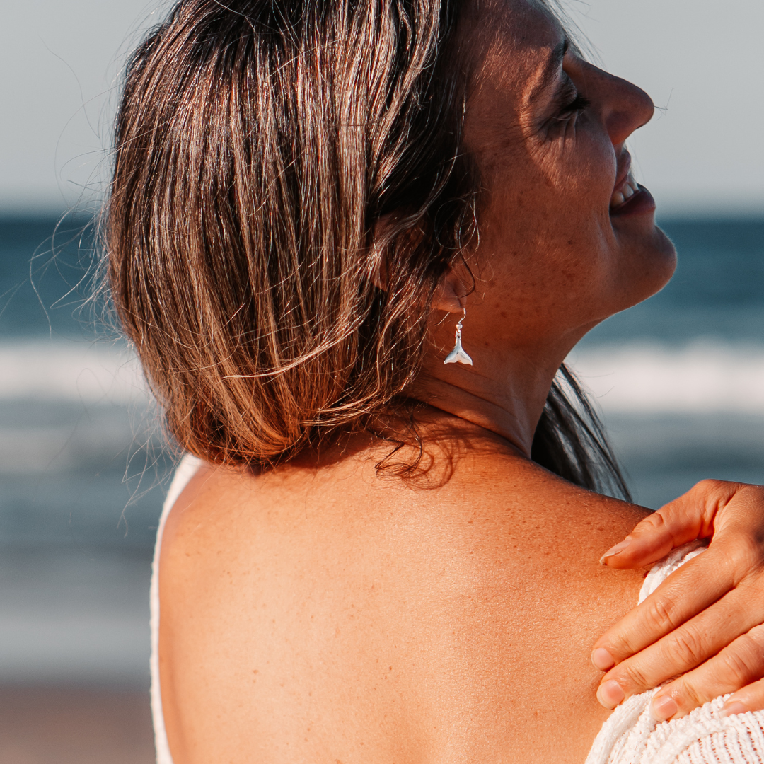 Let your spirit dive deep with our Sterling Silver Whale Tail Earrings — a tribute to freedom, strength, and the rhythm of the sea. Each polished whale tail charm sways gently from sterling silver French hooks, catching the light like sun on the water. Simple, soulful, and full of ocean magic, they’re made for those who feel most at home beneath the wide open sky.