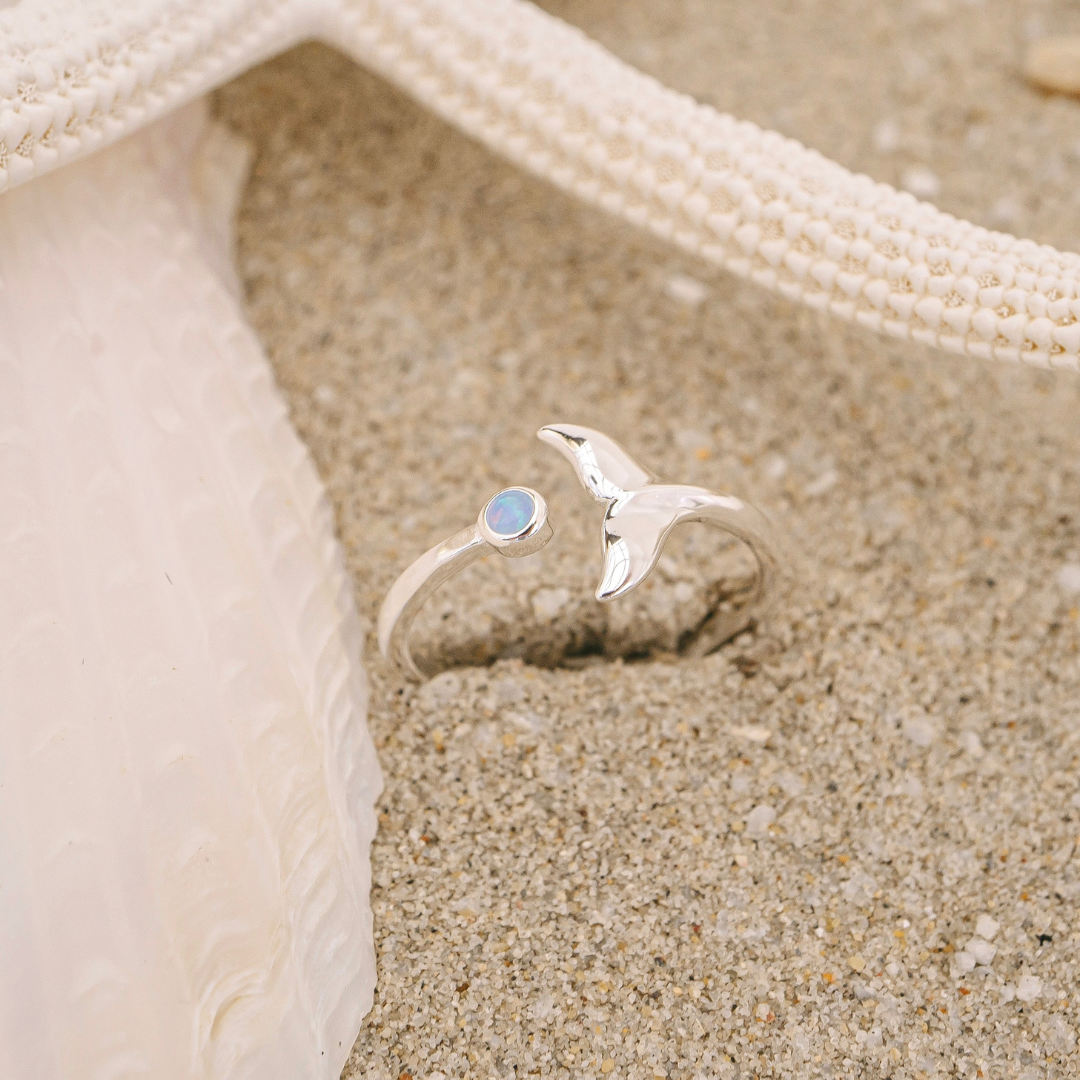 Dive into the beauty of the ocean with the Azure Whale Tail Ring, a sterling silver treasure that wraps around your finger like the embrace of the sea. Open at the top, it features a graceful whale tail on one end and a sparkling blue centrepiece on the other, reminiscent of shimmering waves under the sun. Adjustable and full of free-spirited charm, this ring is a perfect symbol of your love for the ocean’s endless wonders.