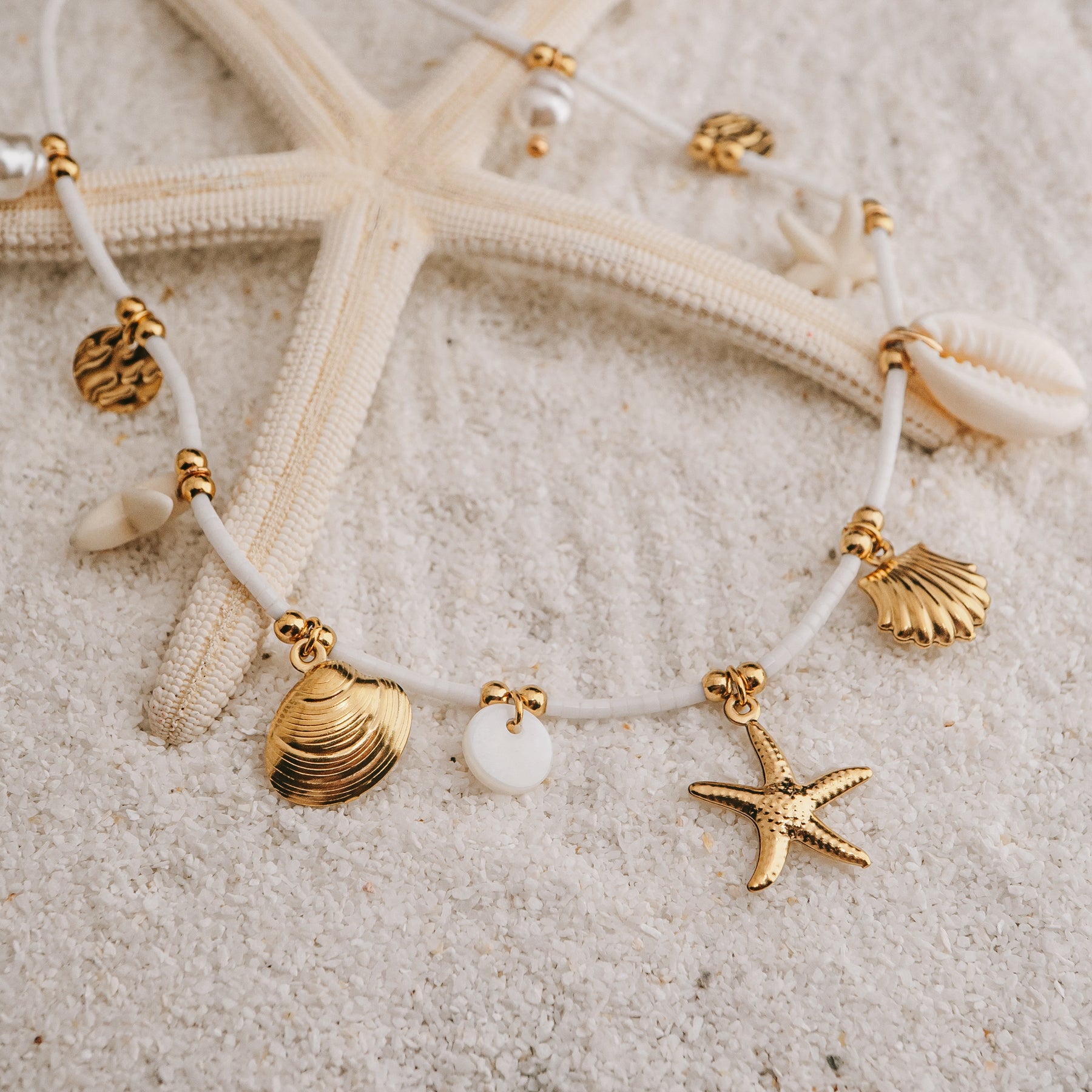 Inspired by sunlit shores and hidden gems washed in by the tide, the Tropical Treasures Necklace feels like a collection of memories from endless summer days. Strung with tiny beads and adorned with an eclectic mix of ocean charms — starfish, shells, cowrie and golden seaside symbols — each detail tells its own little story of salt air and wanderlust. Light, playful, and effortlessly bohemian, this necklace sits beautifully at the neckline and layers with ease. A joyful reminder to roam freely, collect moments, and always follow the warmth of the sun.