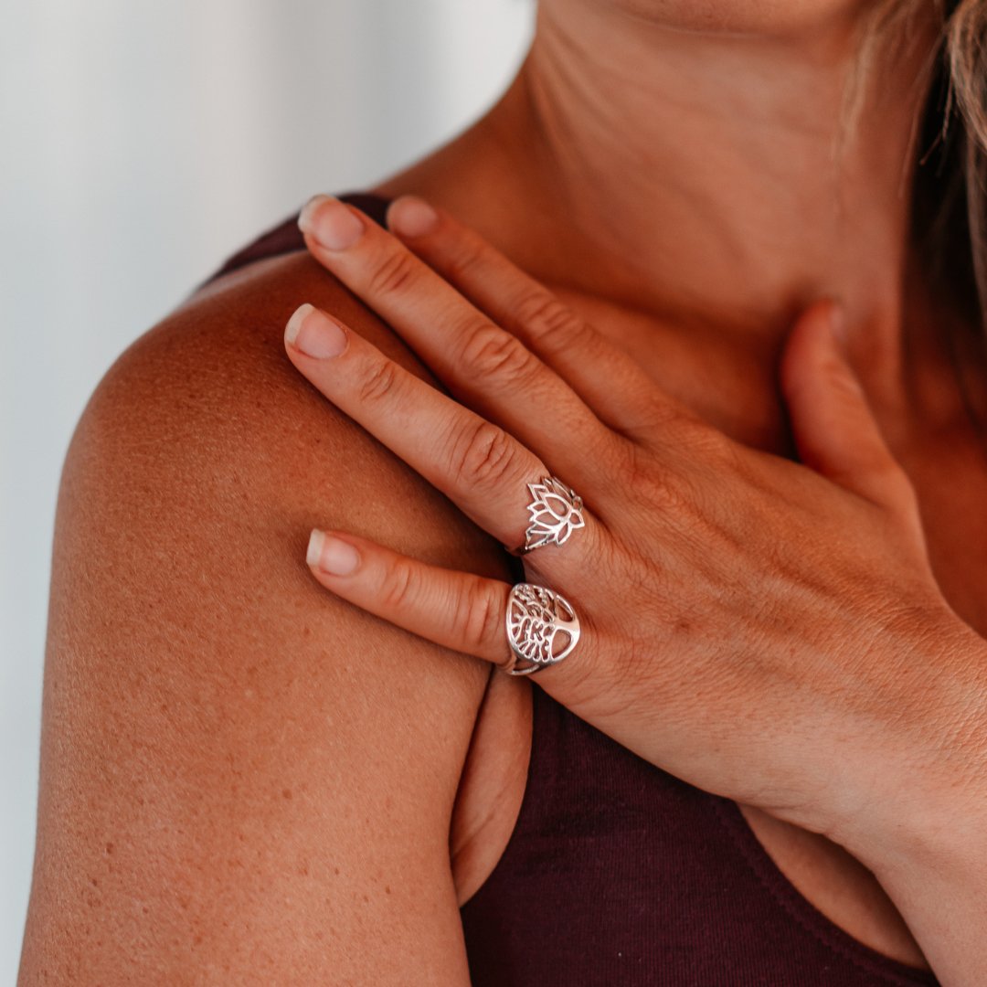 The Branches of Being Ring is a gentle reminder of your connection to all that is. Crafted in sterling silver, this soulful piece features a large open-cut Tree of Life design that curves gracefully around the finger, symbolising growth, grounding, and the eternal cycle of renewal. Lightweight and comfortable, it’s a spiritual adornment made to carry the essence of life’s journey wherever you go